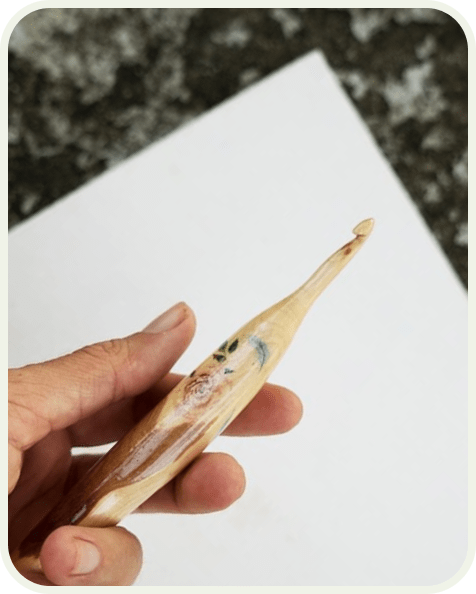 One day, I realized these branches could become something purposeful. They felt like friends my hands already knew. It took me a moment to realize my fingers wanted to knit with them. So I started carving, and what began as an experiment became a passion. Each hook is born from a walk through the forest, from picking up what’s been naturally offered, and continuing the piece of work as a collaboration with nature.