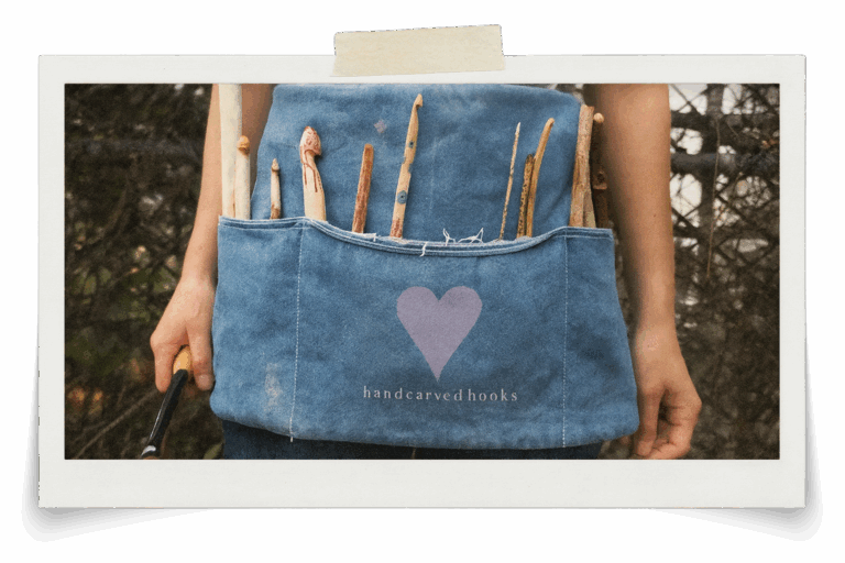 HANDCARVED HOOKS is a one-woman studio that transforms fallen branches into beautiful, functional fiber craft tools. Each hand-carved hook or knitting needle become both a practical instrument for your yarn work and a miniature piece of art—rustic, intentional, and entirely unique.