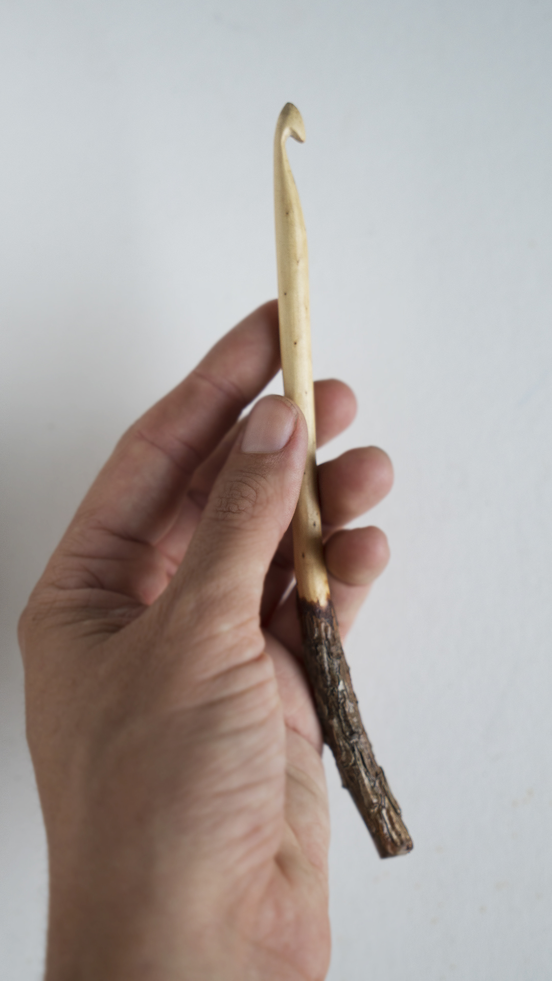Carved from Southern pine, this 10″ Tunisian hook brings the forest into your hands. The shaft is smooth and polished for effortless glide, while natural bark at the end creates a textured stitch stopper that’s as functional as it is beautiful. Perfect for makers who want a sleek working surface with an organic grip. The bark adds just the right amount of texture—grounding and tactile.
